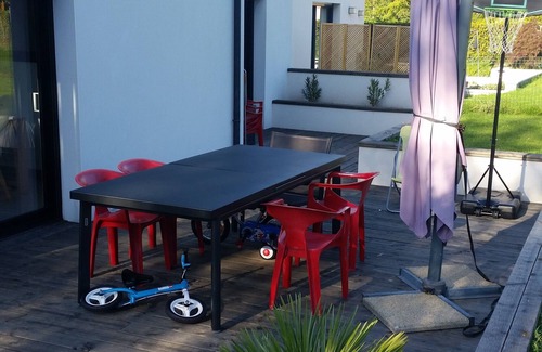 Vous pourrez profiter aussi de notre terrasse de 50m2 exposée plein sud (avec table et chaises, 2 transats, barbecue à charbon et plancha gaz) qui donne sur un jardin sécurisé pour les enfants car entièrement clos.