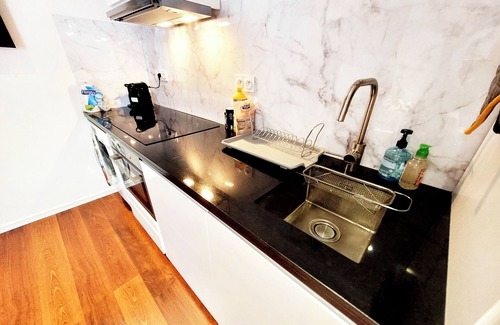 The kitchen is equipped with an oven, a stovetop, and a refrigerator, as well as a coffee maker, a microwave, and cookware. Connect to the free WiFi, or get cozy in front of the Smart TV. Bathroom amenities include a hair dryer, towels, and toilet paper. And because there's access to laundry facilities, you can go a bit lighter on your packing. Other amenities at this 2-bedroom, 1-bathroom rental include bed sheets, a desk, an ironing board, and heating.