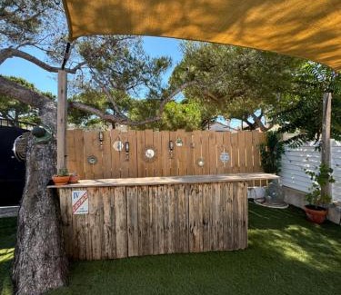 Providing a garden, Maison au cœur de la capte provides accommodations in Hyères. This beachfront property offers access to a terrace, a pool table, free private parking, and free Wifi. Capte is a few steps from the apartment and Toulon Train Station is 15 miles away. This 1-bedroom apartment will provide you with a flat-screen TV, air conditioning, and a living room. The accommodation is non-smoking. There is an on-site bar, and you can also make use of the kitchen facilities. You can play table tennis and darts at the apartment, and the area is popular for cycling. Zénith Oméga Toulon is 16 miles from Maison au cœur de la capte, while Chateau de Grimaud is 31 miles away. Toulon - Hyeres Airport is 1.9 miles from the property.