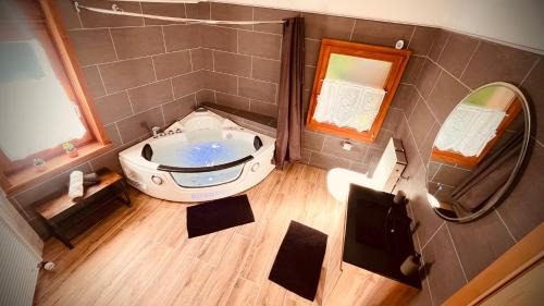 A recently renovated vacation home, Maison au cœur du Val-de-Travers offers accommodations in Saint-Sulpice. This property offers access to a terrace and free private parking. Outdoor seating is also available at the vacation home. With free Wifi, this 1-bedroom vacation home features a cable flat-screen TV, a washing machine, and a fully equipped kitchen with an oven and microwave. Towels and bed linen are available in the vacation home. There's also a seating area and a fireplace. Guests can relax in the garden at the property. Saint-Point Lake is 17 miles from Maison au cœur du Val-de-Travers, while International Watch and Clock Museum is 23 miles from the property. Bern-Belp Airport is 55 miles away.