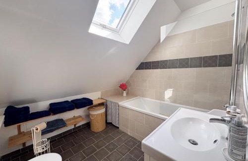 Maison au calme à la campagne offers accommodations in Les Bottereaux, 15 miles from Golf of Bois-Francs and 27 miles from Le CADRAN. With garden views, this accommodation features a terrace. This pet-friendly vacation home also has free Wifi. The vacation home features 3 bedrooms, a fully equipped kitchen with a dishwasher and an oven, a washing machine, and 1 bathroom. Towels and bed linen are available in the vacation home. This vacation home is allergy-free and non-smoking. Manufacture Bohin is 7.7 miles from Maison au calme à la campagne. Deauville - Normandie Airport is 48 miles from the property.