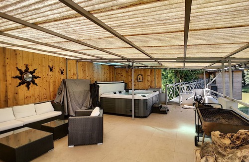 Profitez a l'extérieure d'une terrasse sous abri avec un SPA 7 places en supplément, un coin détente et d'un jardin avec balançoire et trampoline.