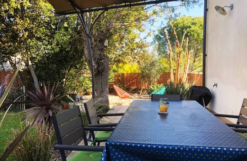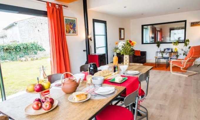 Maison faite pour séjour en famille ou entre amis. Très lumineuse, disposant d'un jardin et d'une terrasse, elle a été décorée avec soin et dispose de tout l'espace convivial et confortable nécessaire.