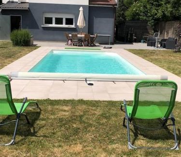 Maison avec piscine is located in Pommérieux, just 8.1 miles from Centre Pompidou-Metz and 8.5 miles from Parc des Expositions de Metz. This property offers access to a terrace and free private parking. The villa features an outdoor pool and a 24-hour front desk. With free Wifi, this 4-bedroom villa provides a cable flat-screen TV, a washing machine, and a fully equipped kitchen with a dishwasher and oven. Featuring air conditioning, this unit has a dressing room and a fireplace. For added privacy, the accommodation has a private entrance and soundproofing. For guests with children, the villa offers an indoor play area and outdoor play equipment. Guests can also relax in the garden. Metz Train Station is 8.6 miles from Maison avec piscine, while Nancy Train Station is 26 miles away. Metz-Nancy-Lorraine Airport is 5 miles from the property.