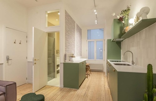Welcome to this mighty townhouse called Maison Brederode! Completely renovated in January 2022, this characteristic 250 square meter house has room for 12 people. Consisting out of 4 spacious apartments (Le Lambermont, Le Marnix, Le Leopold and Le Pierre), the whole group can gather at the 3 meter long oak wood table at the ground floor apartment. The large staircase with original elements feels like a museum and connects all rooms with each other.