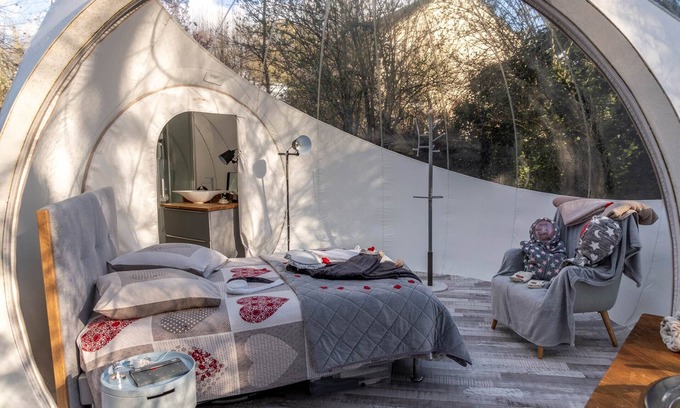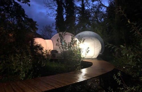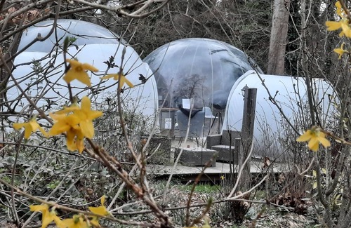 POUR INFO : à l'intérieur de la maison bulle vous sont fournis une grosse couette, 2 couvertures polaires, des pyjamas en pilou-pilou, un sur-matelas chauffant, un tout petit radiateur soufflant mais la maison bulle reste un logement INSOLITE et l'hiver il FAIT FROID L'HIVER ! PENSEZ A PRENDRE DES VETEMENTS CHAUDS. Une terrasse privative est à votre disposition.