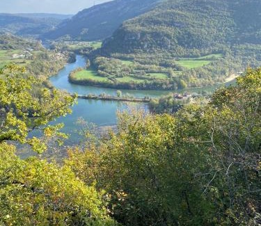 Maison cœur de village la petite montagne is located in Saint-Julien, just 22 miles from Royal Monastery of Brou and 24 miles from Vouglans Lake. The air-conditioned accommodation is 21 miles from Bourg-en-Bresse Golf Course. Free Wifi is available throughout the property and Ainterexpo is 23 miles away. Featuring a terrace and mountain views, the spacious vacation home includes 4 bedrooms, a living room, flat-screen TV, an equipped kitchen, and 1 bathroom with a bidet and a bath. Guests can take in the ambience of the surroundings from an outdoor dining area. For added privacy, the accommodation features a private entrance. Lake Genin is 30 miles from the vacation home. Lyon - Saint Exupery Airport is 58 miles from the property.