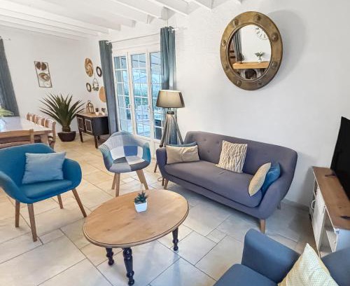 Featuring a garden, Maison Calme avec Cheminée, Idéal Familles features accommodations in Asnelles. This beachfront property offers access to a patio and free Wifi. The property provides barbecue facilities and parking on-site. Providing a terrace and garden views, the spacious vacation home includes 6 bedrooms, a living room, flat-screen TV, an equipped kitchen, and 2 bathrooms with a shower. Towels and bed linen are featured in the vacation home. There's also a seating area and a fireplace. Asnelles Beach is a 4-minute walk from the vacation home, while Arromanches 360 is 2.1 miles away. Caen–Carpiquet Airport is 19 miles from the property.
