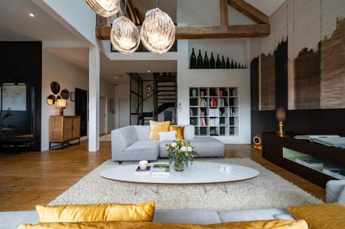 At the gates of Reims and in the heart of the Champagne vineyards, in the village of Rilly-La-Montagne, the Maison d'Hôtes "Les Bulles Dorées" welcomes you. Installed in a former forage loft, entirely renovated by an architect from Reims, this unique place reveals a privileged calm. Bathed in a soft light and offering a breathtaking view from the living room over the garden and the Champagne vineyards, the Maison d'Hôtes has four rooms, including two family rooms (17m2 to 30 m2) and a relaxation area with a Norwegian bath located in the chalk cellars of the house. Each room is decorated in a modern and warm style and bears the name of one of the emblematic vintages of the house. Les Bulles Dorées" is a discreet retreat in the vineyard. Wine lovers will also have the opportunity to taste the estate's Champagnes. "Les Bulles Dorées" invites you to relax, to settle down for a moment of reading in the large lounge with a panoramic view of the vineyard, to have breakfast in the Champagne room under the glass roof, or to soak up the calm in the heart of the garden.