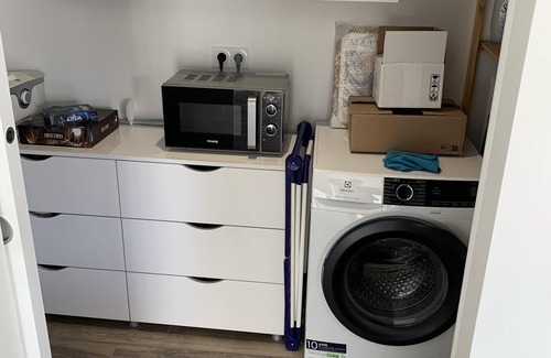 This 1-bedroom, 1-bathroom rental features a living room, a BBQ grill, and a desk. The kitchenette is equipped with an oven, a stovetop, and a refrigerator, as well as a coffee maker, an electric kettle, and a microwave. And there's access to laundry facilities, so you can even pack a bit lighter.