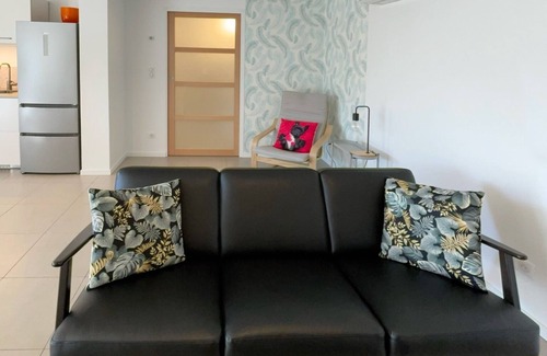 A living room, a dining area, a BBQ grill, and air conditioning are featured at this 2-bedroom, 1-bathroom rental. Bathroom amenities include a hair dryer, towels, and toilet paper. The kitchen is equipped with an oven, a stovetop, and a refrigerator, as well as a coffee maker, an electric kettle, and a microwave. And you won't have to pack extra clothes, because you'll have a washer and dryer, too.