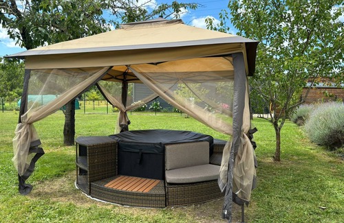 Maison de Campagne au Cœur des Vignes: se Retrouver en Famille ou Entre Amis ! is located in Villefranche-de-Lonchat. Maison de Campagne au Cœur des Vignes: se Retrouver en Famille ou Entre Amis ! provides accommodation, featuring Wellness Facilities, Fireplace/Heating, Hot Tub, among other amenities. This House features Wellness Facilities, Fireplace/Heating, Hot Tub, to make your stay a comfortable one.