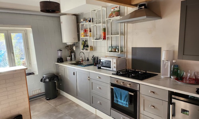Maison de Campagne Rénovée à 15min D'angoulême is located in Agris. Maison de Campagne Rénovée à 15min D'angoulême provides accommodation, featuring Bedding/Linens, Wellness Facilities, Fireplace/Heating, among other amenities. This House features Bedding/Linens, Wellness Facilities, Fireplace/Heating, to make your stay a comfortable one.