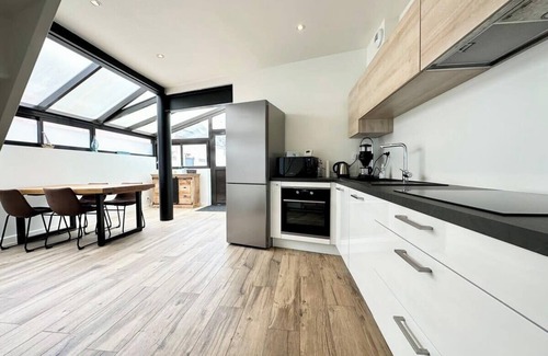 - Open plan fully equipped kitchen (oven, microwave, dishwasher, toaster, kettle, coffee machine...)