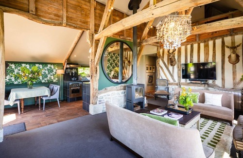 Formerly stables and surrounded by stud farms, this 18th century half-timbered maison has been exquisitely renovated. The owners have created a boutique style family home which combines antique furnishings and objets d’art with ultra-modern features (such as 4K Smart TV and a Sonos dock). Its light-filled lounge opens out to the garden and jacuzzi terrace whilst the fully-equipped kitchen exudes character alongside contemporary style. The wooden table also acts as an office space with free Wi-Fi in case you are looking to peacefully work from home.