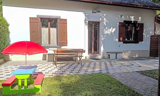 House "Maison des Gorges", 2 storeys. On the outskirts. Private: small garden (fenced). In the house: central heating system. Parking at the house. Supermarket 1.2 km, 10 minute walk to the centre, bus stop "Moutier" 800 m.