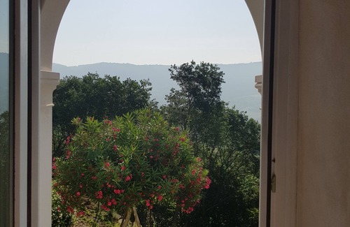 The house is located on a hill surrounded by a medieval old village with a castle on top. From all the windows you can enjoy a wonderful view over vineyards, olive trees and the beautiful valleys.
