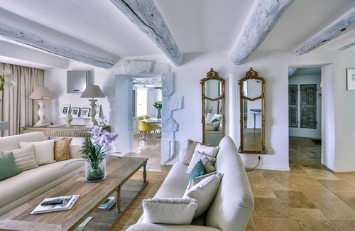 It really is a privilege to stay in this historic village house that dates back to the 17th century. The characterful interiors have been decorated with refined style and there’s an authentic ambience across its elegant lounge, dining room and perfectly equipped kitchen with doors sliding open to the al-fresco dining terrace. Modern additions include air-conditioning throughout, a Sonos music system and Smart TVs in its mezzanine lounge and two of the three bedrooms.