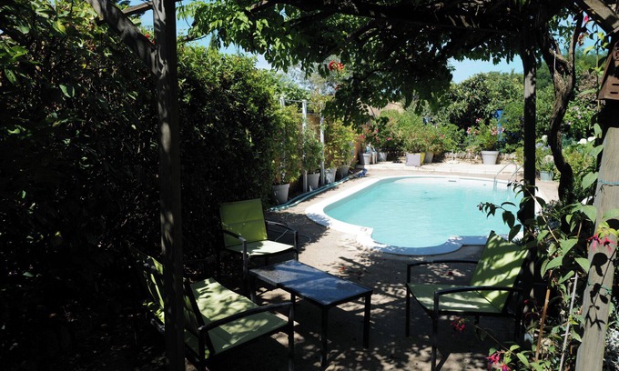 Private and secluded terrace, and a charming, shaded, tree-lined garden. Free access to the swimming pool until 7 p.m.