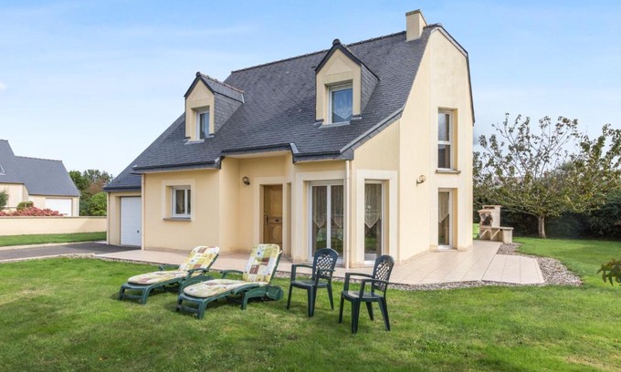 Maison familiale avec jardin et terrasse à Saint-Cast-le-Guildo offers accommodations in Saint-Cast-le-Guildo, 14 miles from Marina and 14 miles from Casino of Dinard. With free private parking, the property is a 14-minute walk from Beach Pen Guen and 13 miles from Port Breton Park. The property offers barbecue facilities and outdoor furniture. The spacious vacation home includes 5 bedrooms, a fully equipped kitchen with a dishwasher and an oven, as well as a kettle. A TV with satellite channels is offered. The accommodation is non-smoking. Dinan Train Station is 16 miles from the vacation home, while Solidor Tower is 17 miles from the property. Rennes–Saint-Jacques Airport is 60 miles away.