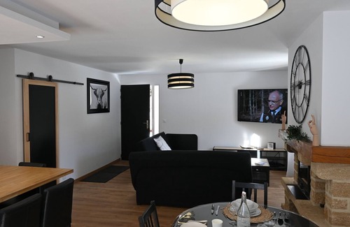 Family house in the mountains of Ascou, with two parental bedrooms and a children's bedroom. Large living room and kitchen area fully equipped to prepare your family meals. A house that aims at the comfort of the family during snow or spring vacations with a large terrace and garden spaces next to a small river. A few steps from Ax-les-thermes, you can spend pleasant vacations with your family or friends. View on the mountain and the countryside, ideal to relax and enjoy the nature, private place to leave the car in front of the accommodation.