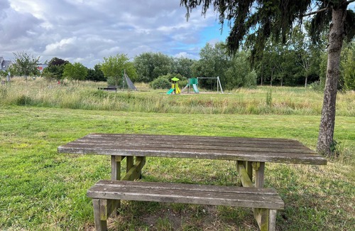 Relax in the garden (enjoy the outdoor furniture!) of this 1291.7-sq-ft vacation home, which also offers a BBQ grill. For a change of scenery, come inside and try your hand at foosball, or enjoy the free WiFi and TV.