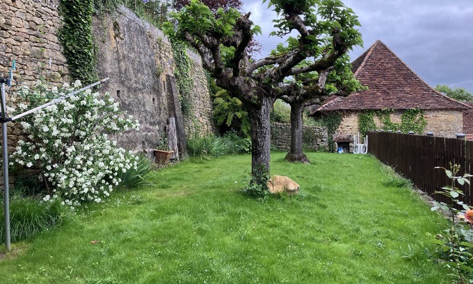 Maison avec jardin, patio et dépendance, idéalement située à Limeuil, à 150 m de la rivière. Maison au caractère authentique dans l'un des plus beaux villages de France, au confluent de la Dordogne et de la Vézère.