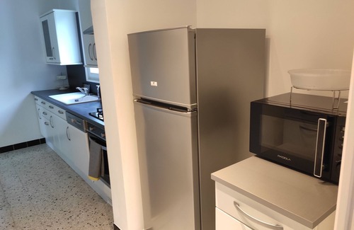 Une cuisine entièrement équipée ( lave vaisselle, four électrique, plaque de cuisson à gaz, réfrigérateur avec congélateur, grille pain, micro ondes, bouilloire, cafetière ...