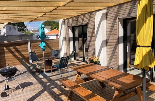 Maison Jasmin near the ocean is located in L'Aiguillon-sur-Vie. Maison Jasmin near the ocean provides accommodation, featuring Parking, Bedding/Linens, Wellness Facilities, among other amenities. This House features Parking, Bedding/Linens, Wellness Facilities, to make your stay a comfortable one.