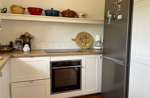 À l'intérieur, la maison se compose d’un grand espace de vie au rez-de-chaussée qui vous accueille avec un salon autour de la cheminée (TV non raccordée, lecteur DVD uniquement) et une salle à manger conviviale. La cuisine entièrement équipée répond à tous vos besoins : plaques de cuisson, four, réfrigérateur-congélateur, lave-vaisselle, cafetière filtre, bouilloire et micro-ondes. Vous bénéficierez aussi d’un accès Wi-Fi.