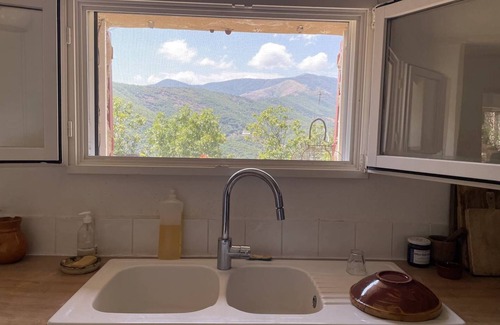 La maison domine fièrement la vallée de Valleraugue et vous dévoile une vue imprenable qui change au rythme des saisons. À l’écart de l’agitation urbaine, cette résidence isolée et discrète vous invite à renouer avec la nature dans un hameau préservé du Parc National des Cévennes. La maison dispose d'un accès à une piscine. (piscine située à 50m de la maison, dans un autre jardin)