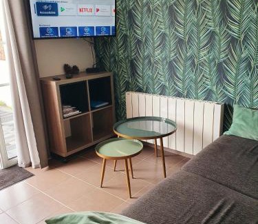 Offering a garden, Maison le Havre de la Gachère, 2 chambres, 2 salles d'eau, parking privé et jardin provides accommodations in Brem-sur-Mer. This property offers access to a terrace, bowling in the bowling alley, free private parking, and free Wifi. The vacation home offers a children's playground and a 24-hour front desk. This vacation home includes 2 bedrooms, a living room and a flat-screen TV, an equipped kitchen with a dining area, and 2 bathrooms with a walk-in shower and a washing machine. Guests can enjoy a meal on an outdoor dining area while overlooking the garden views. For added privacy, the accommodation has a private entrance and soundproofing. A mini-market is available at the vacation home. If you like to discover the area, cycling, hiking and walking tours are possible in the surroundings and the vacation home can arrange a bicycle rental service. Plage des Dunes is 1.5 miles from Maison le Havre de la Gachère, 2 chambres, 2 salles d'eau, parking privé et jardin, while Casino of Saint Jean de Monts is 21 miles from the property. Nantes Atlantique Airport is 49 miles away.