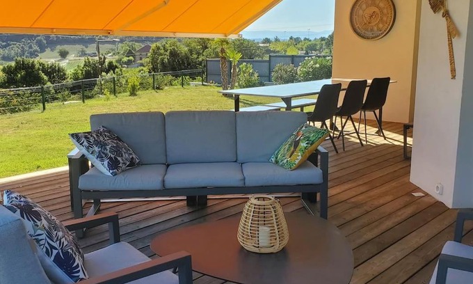 Offering a garden, Maison moderne dans la drome des collines features accommodations in Bren. This property offers access to a terrace and free private parking. International Shoe Museum is 10 miles away and Albon-Senaud Golf Course is 12 miles from the villa. With free Wifi, this 2-bedroom villa offers a flat-screen TV, a washing machine, and a fully equipped kitchen with a dishwasher and oven. Towels and bed linen are featured in the villa. The property has an outdoor dining area. Valence Parc Expo is 16 miles from the villa, while Valrhona Chocolate Factory is 10 miles away. The nearest airport is Alpes–Isère Airport, 31 miles from Maison moderne dans la drome des collines.