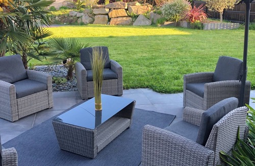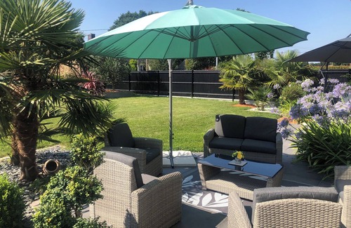 Relax in the garden (enjoy the outdoor furniture!) of this vacation home. For a change of scenery, come inside and enjoy the WiFi and cable/satellite TV.