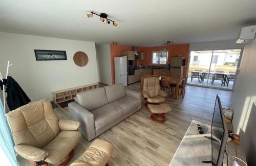 Maison neuve vue sur l'ancien moulin du Médoc offers accommodations in Lesparre-Médoc, 24 miles from Gironde Estuary and 19 miles from Notre-Dame de la Fin des Terres Basilica. This vacation home features air-conditioned accommodations with a terrace and free Wifi. Médoc Resort Golf Course is 30 miles from the vacation home. The vacation home features 4 bedrooms, a fully equipped kitchen with a microwave and a fridge, a washing machine, and 2 bathrooms with a hair dryer. A flat-screen TV is offered. For added privacy, the accommodation features a private entrance. Méjanne Golf Course is 30 miles from Maison neuve vue sur l'ancien moulin du Médoc, while Ardilouse-Lacanau Golf is 30 miles from the property. Bordeaux–Mérignac Airport is 45 miles away.