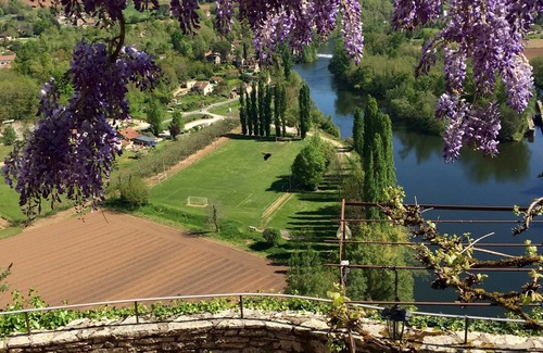 Enter a gate and walk down a garden path to this charming stone house on the cliff and adjacent to the historic church. Spectacular views of the Lot river and countryside. The house occupies a tranquil location just away from the center of the village but secluded by its own gate and gardens. 3 double bedrooms, 2 full baths, two terraces. Dine al fresco on the grape vine covered terrace cooled by river breezes while you enjoy amazing vistas of the river. Built in outdoor BBQ. Well-furnished, fully equipped gourmet kitchen. Laundry, free wifi, TV with French channels, CD/DVD player. Free calls almost anywhere in the world from the house phone. Fresh linens supplied weeklyif requested.