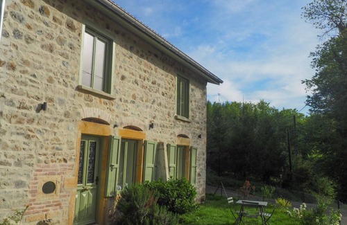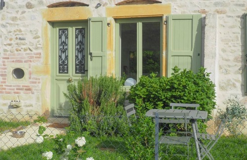 Located in Saint-Bonnet-des-Bruyères, this welcoming vacation home lets you experience it all. With convenient onsite parking, you'll be ready to make the 32-minute drive to Cluny Abbey or the 39-minute drive to Solutre Rocks.