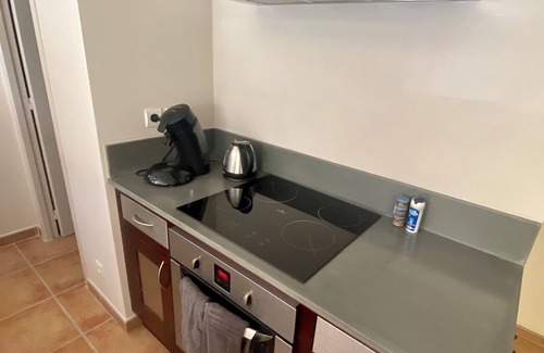 A dining area and air conditioning are featured at this 2-bedroom, 1-bathroom rental. Bathroom amenities include a hair dryer and towels. The kitchen is equipped with an oven, a stovetop, and a refrigerator, as well as a coffee maker, an electric kettle, and a microwave. And because there's a washer and dryer, you can go a bit lighter on your packing.