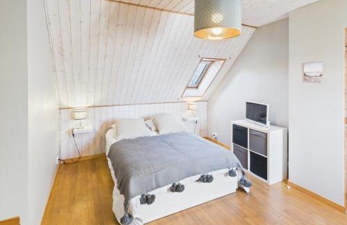 Providing a garden, Maison pour 10 personnes avec grand extérieur provides accommodations in Plomeur. The vacation home, set in a building dating from 2001, features free Wifi and free private parking. Cornouaille Theatre is 17 miles away and Le Palais des Evêques de Quimper is 18 miles from the vacation home. Featuring a terrace with garden views, this vacation home also comes with a TV, a well-equipped kitchen with a dishwasher, an oven, and a microwave, as well as 2 bathrooms with a bath and a hair dryer. The accommodation is non-smoking. Quimper Train Station is 18 miles from the vacation home, while Departmental Breton Museum is 18 miles from the property. Lorient South Brittany Airport is 57 miles away.