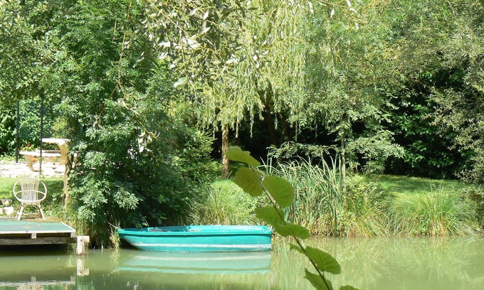 maison privée sur le bord de l'étang privé de la propriété | Cottage in Sampigny