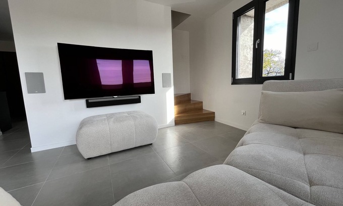 Maison Privative 100m2 is located in Lovagny. Maison Privative 100m2 provides accommodation, featuring TV, Balcony/Terrace, Sports/Activities, among other amenities. This House features TV, Balcony/Terrace, Sports/Activities, to make your stay a comfortable one.