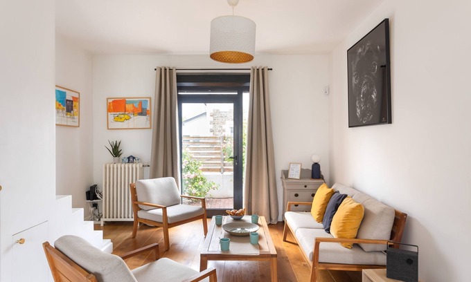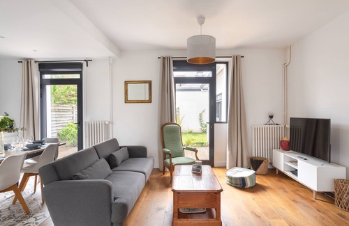 Cocoonr agency offers you for rent, in Saint-Malo, less than 2 km from the Grande Plage du Sillon, this charming house with Wi-Fi, covering 101 m² and accommodating up to 6 guests. It features a lovely 34 m² living area, a fully equipped kitchen, three beautiful bedrooms, two bathrooms (with both shower and bathtub), and a garden of approximately 50 m². Cleaning is included in the rental, and high-quality 4-star hotel linen is provided (bed sheets, towels, dish towels). Your bed will be made upon arrival.