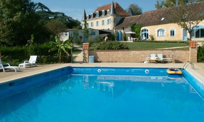 Featuring a seasonal outdoor swimming pool, Maison spacieuse au cœur de Queyssac avec jardin provides accommodations in Queyssac. With free private parking, the property is 6.1 miles from Bergerac Train Station and 10 miles from Château Les Merles Golf Course. The property features barbecue facilities and outdoor furniture. The spacious vacation home includes 5 bedrooms, a fully equipped kitchen with a dishwasher and an oven, as well as a kettle. There's also a seating area and a fireplace. Chateau des Vigiers Golf Course is 21 miles from the vacation home, while Domaine de la Marterie Golf Course is 26 miles from the property. Bergerac Dordogne Périgord Airport is 9.3 miles away.