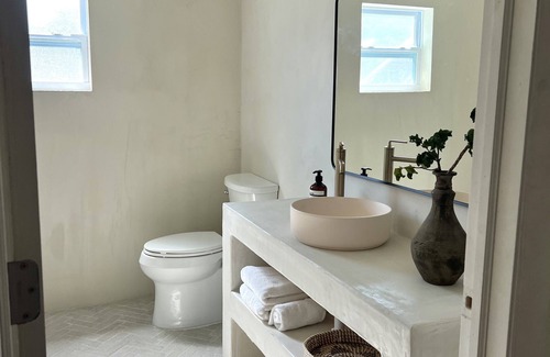 Maisonette, is an intimate one bedroom studio apartment part of a 1920's house that we lovingly call L'Auberge Du Croissant. Meticulously designed with a minimalist aesthetic, this compact space is thoughtfully designed to offer simplicity and comfort. Enjoy a tranquil atmosphere with clean lines, neutral tones, and efficient use of space. Perfect for those who appreciate a clutter-free environment and a restful stay. The space offers a large full size bathroom, king size bed with and a dining workspace with a kitchenette and a multi-function oven to make simple meals.