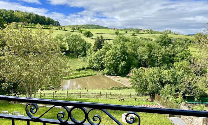 comfortable and spacious living , high ceilings is situated on a farming estate of 80 hectares at the end of a privat access road, next to a small "Chateau" , surrounded by fields, cows and horses, 2 km from the center of Cluny (South Burgundy), with all shopping amenities and local saturday market. Quiet location with numerous options for hiking, biking (the entry of the Voie Verte of Cluny is less than