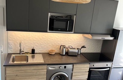 Prepare a home-cooked meal in the kitchen, complete with an oven, a stovetop, and a refrigerator, as well as a coffee maker, an electric kettle, and a microwave. Bathroom amenities include a hair dryer, towels, and toilet paper. And there's access to laundry facilities, so you can even pack a bit lighter. Other amenities include bed sheets, air conditioning, heating, and a dining table.
