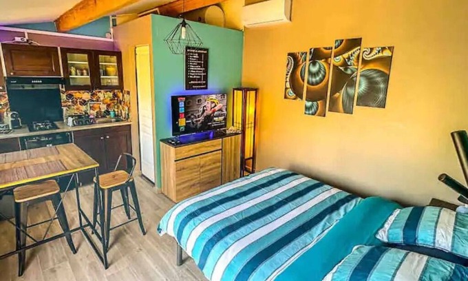 Maisonnette Clim Piscine Jacuzzi is located in Sussargues. Maisonnette Clim Piscine Jacuzzi provides accommodation, featuring Child Friendly, among other amenities. This Apartment features Child Friendly, to make your stay a comfortable one.