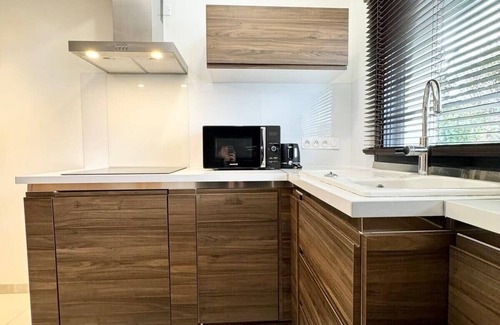 - Open, fully-equipped kitchen (fridge, freezer, microwave, oven, kettle, coffee maker, toaster, dishwasher, washing machine, etc.).