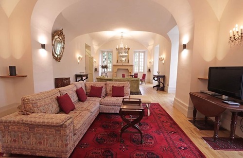 The vaulted lounge (70sqm), with its crystal chandeliers, offers a beautiful acoustic for music lovers and musicians. A fully equipped laundry is also available. A plancha is put at your disposal.