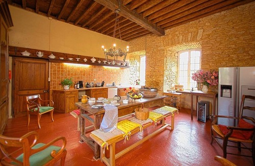 A large hall, paved with 17th-century terracotta tiles, serves all the vaulted rooms on the ground floor. The vast kitchen (42sqm, with beautiful stone fireplace, back kitchen, professional cooker), is perfectly suited to cooking for large families by either the housewife or a Chef.